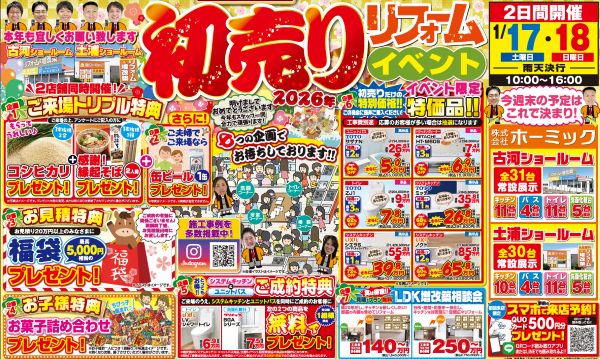 古河ショールームと土浦ショールームにて初売りイベントを開催します!